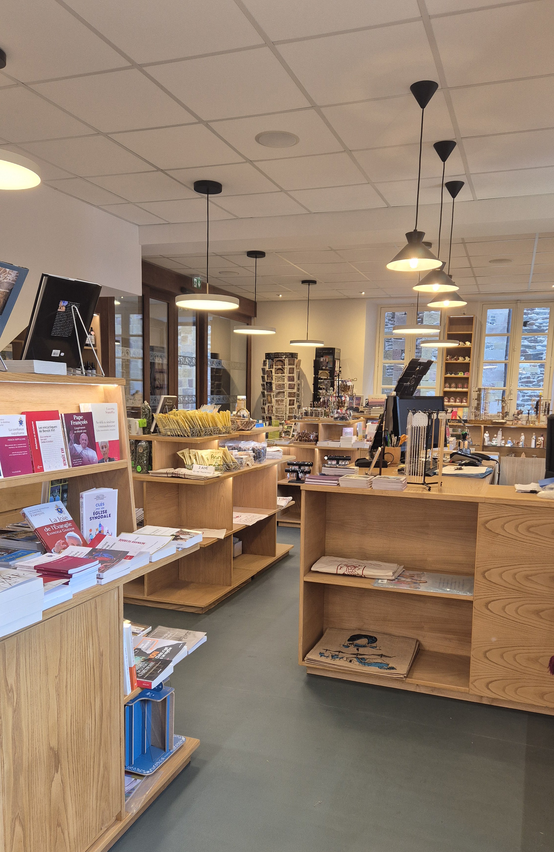 Bâtiment classé Monument Historique, l’enjeu était de rénover la boutique des frères de la Communauté des Prémontrés de Mondaye ainsi que leurs chambres privées aux étages, tout en respectant le caractère du bâti existant.